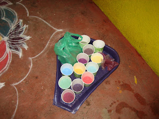 My last Diwali post was a little premature as I haven't seen anything yet. As soon as it got darker, the sounds of fireworks started getting louder and louder. Yinon ran to me shivering like a leaf and jumped in place every time we heard a load "boom". It literally sounded like we were in the middle of a war zone. It dawned on me that cracking noises leading up to tonight were just a kiddie game. We must be getting the real deal now.